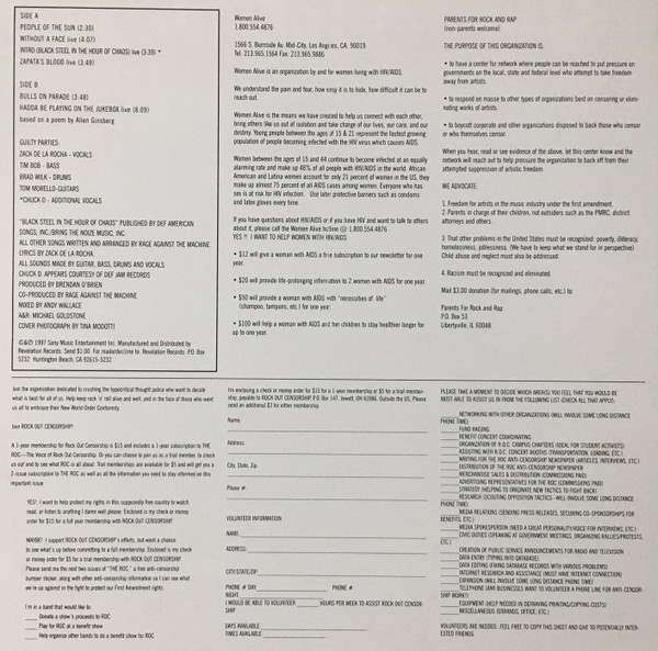 - Lyrics By – Zack de La Rocha (tracks: A1, A2, A4 to B2)
