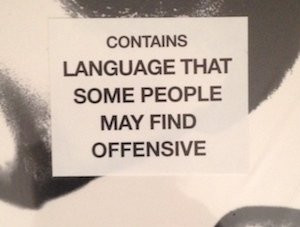 Hype sticker on shrink wrap: "Contains Language That Some People May Find Offensive".