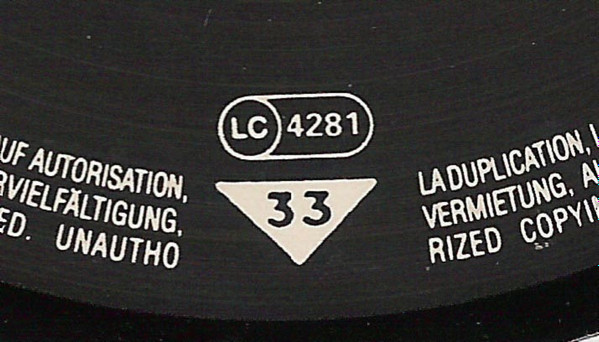 EU Picture sleeve (this release): barcode, GEMA / BIEM & LC4281 on labels (likely a repress since a barcode was added to the sleeve)