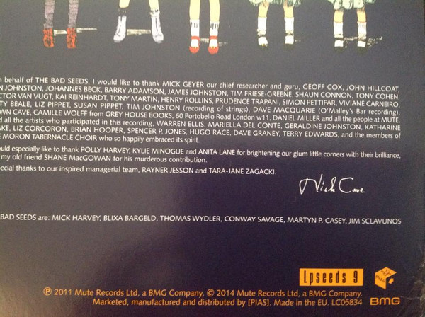 - Band [The Bad Seeds Are:] – Blixa Bargeld, Conway Savage, Jim Sclavunos, Martyn P. Casey, Mick Harvey, Thomas Wydler