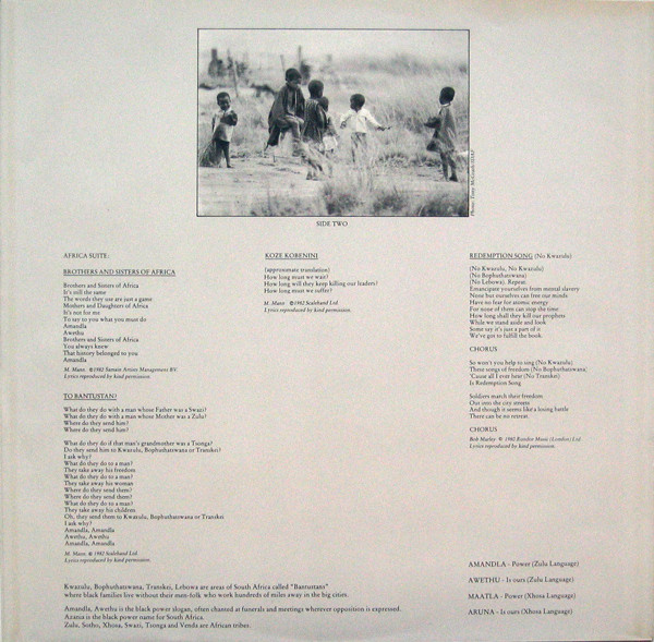 - Vocals [African Sequences Recorded In London] – Chief Dawethi, Fats Mothya, Jabu Mbalu, Rufus Sefothuma, Zanty Lekau