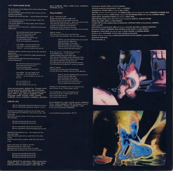 - Artwork [Based On Vidio Images] – David Gardner (2), Malcolm Poynter, Peter Gabriel