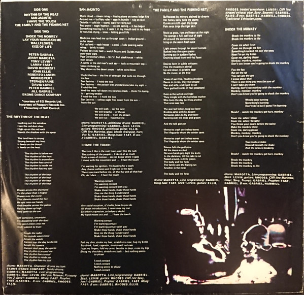 - Synthesizer – Jerry Marotta (tracks: A1), Larry Fast (tracks: A1 to B1, B3, B4), Tony Levin (tracks: A1)
