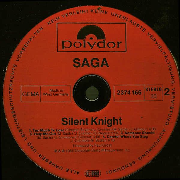 Silent Knight: Red/black Polydor center labels with red inner ring.