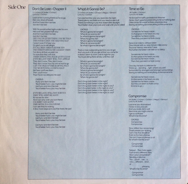 Composed By – J. Crichton*, J. Gilmour*, M. Sadler*