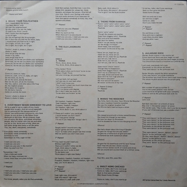 Special thanks to Joe & Jody Walsh, Stephen Bishop, Lou Volpano, Doc Pomus, John Strauss, Belinda Tischler, George Osaki, Warren Dewey, Morris Lyda, Record Plant Maintenance. Very special thanks to John Belushi and Don Aykroyd.
