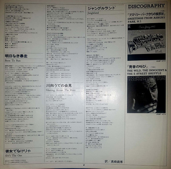 4-pages inner sleeves with japan translations. There were 4 issues of Born To Run from Japan, the vertical Red obi as above was the second issue