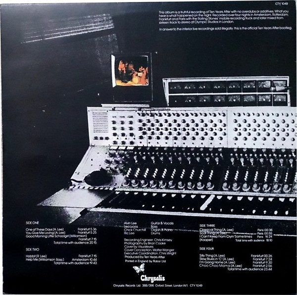 This album is a truthful recording of Ten Years After with no overdubs or additives. What you hear is what happened on the night. Recorded over four nights in Amsterdam, Rotterdam, Frankfurt and Paris with the Rolling Stones' mobile recording truck.