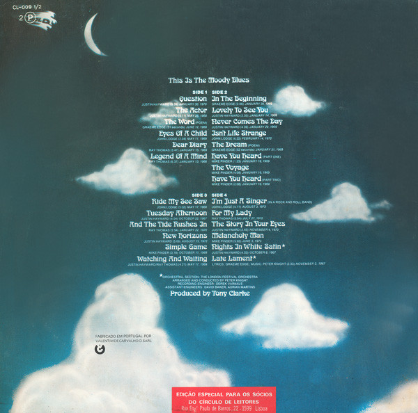 - Written-By – Graeme Edge (tracks: A3, B1, B5), John Lodge (tracks: A4, B4, C1, D1), Justin Hayward (tracks: A1, A2, B2, B3, C2, C4, C6, D3, D5), Mike Pinder (tracks: B6 to B8, C5, D4), Ray Thomas (tracks: A5, A6, C3, C6, D2)