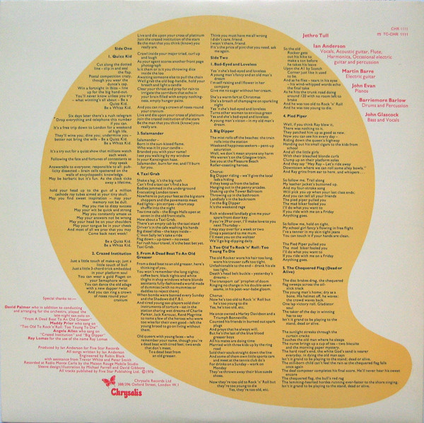 - Vocals, Acoustic Guitar, Flute, Electric Guitar [Occasional], Harmonica, Percussion – Ian Anderson
