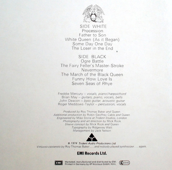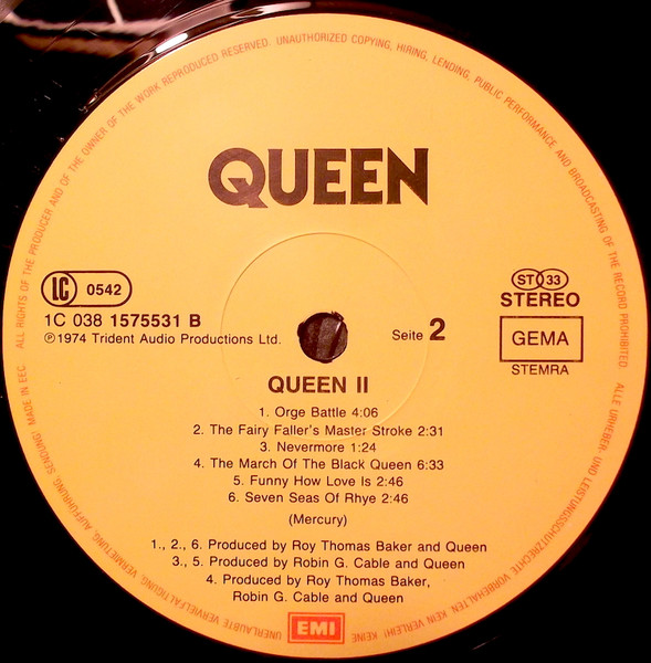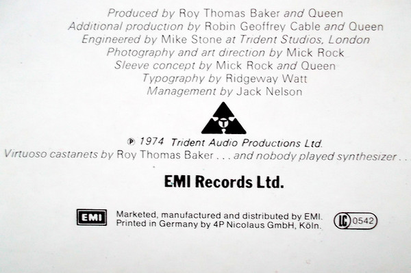 - Producer [Produced By] – Queen, Robin G. Cable* (tracks: B3 to B5), Roy Thomas Baker (tracks: A1 to B2, B4, B6)