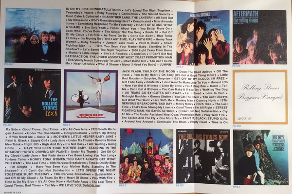 Includes an insert titled "211 reasons why The Rolling Stones is the world's greatest rock and roll band" with album covers and songs.
