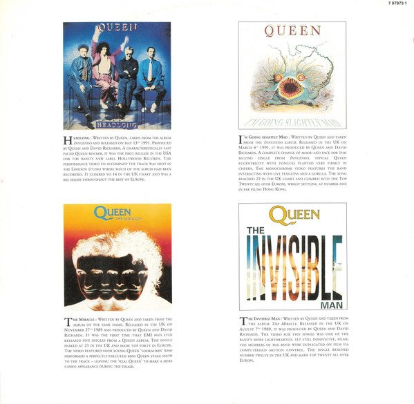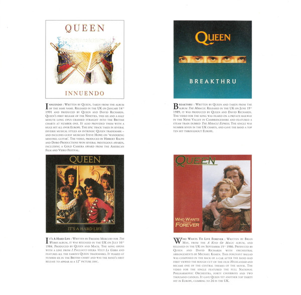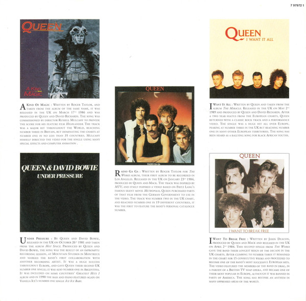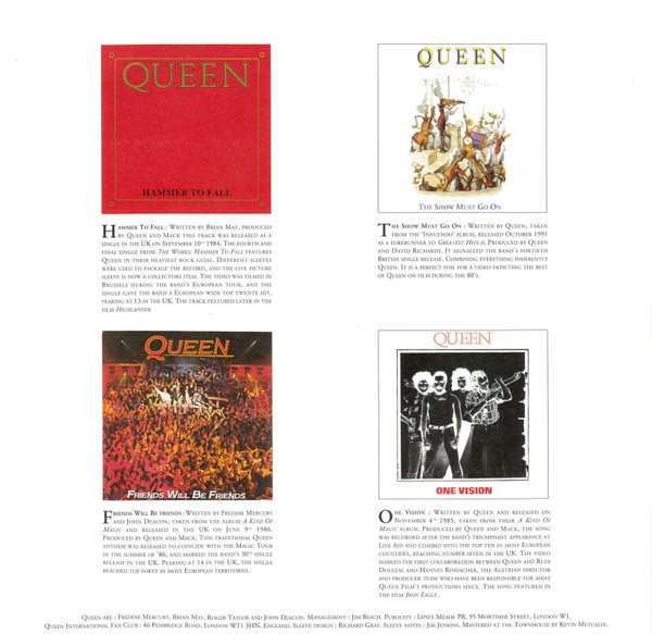 - Written-By – Brian May (tracks: B4, D1), David Bowie (tracks: A2), Freddie Mercury (tracks: B2, D2), John Deacon (tracks: A5, D2), Queen (tracks: A2, A4, B1, B3, C1 to C4, D3, D4), Roger Taylor (tracks: A1, A3)
