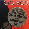 Originally issued with a hype sticker on the shrinkwrap. On the earlier copies the sticker states: "Includes Start Me Up COC 16052" and on later copies: "Includes The Hit Singles Waiting On A Friend And Start Me Up COC 16052".