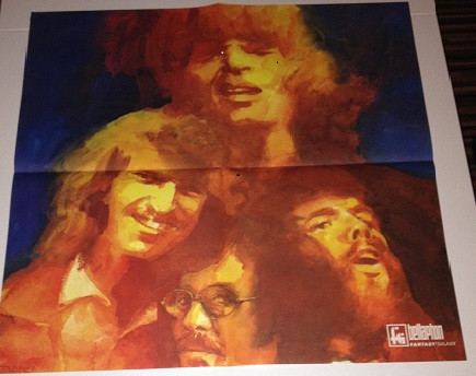 Gatefold sleeve includes a big poster. The labels have two horizontal lines accros.