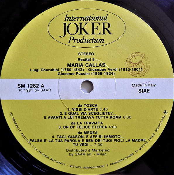 Spine string: "SM 1282 Maria Callas - Recital 5 SM 1282".