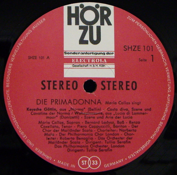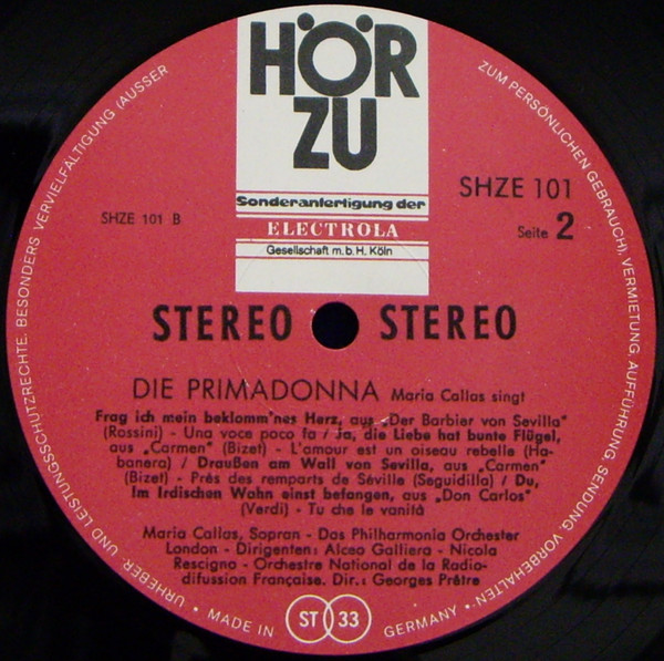 Die Primadonna Maria Callas Singt Die Schönsten Arien This version does have "HÖR ZU langspielplatte" on front and label