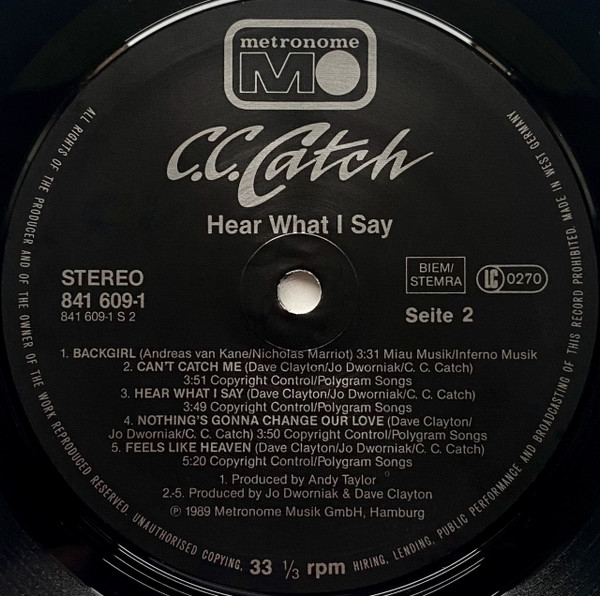 (P) 1989 Metronome Music GmbH, Hamburg