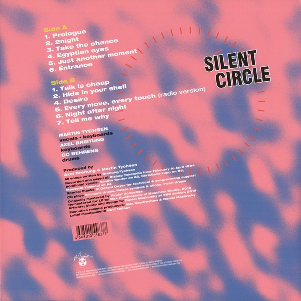"Back!", the second full-length album of the West German band Silent Circle has been released in 1994. The impetus for the recording and release of the new album two aspects. Firstly, the official greatest hits collection "Best Of Silent Circle Volume II", that was released a year earlier, had an excellent sales and revealed that the group still have a lot of devoted fans. Secondly, the global success of DJ BoBo (Axel Breitung has been involved with the production of his debut album "Dance With Me") pointed a new musical direction for the band. Realizing that BoBo`s sound was hot, Breitung and Tychsen are teamed up to reach the top of the charts once again.