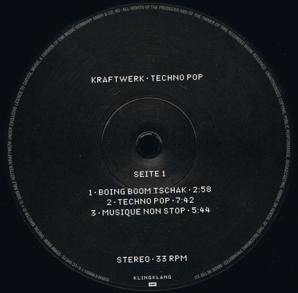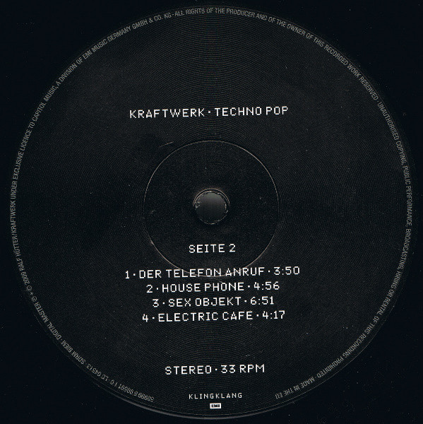 Previously known as Electric Cafe. Remastered and re-released under its original working title, Techno Pop. German Version. 200gr on scale without hints or labels.