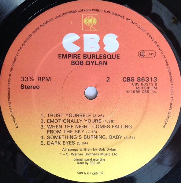 - Pressed By – CBS Pressing Plant, Aston Clinton