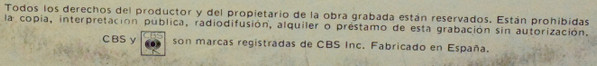 Fabricado en España por Discos CBS, S.A. - Madrid