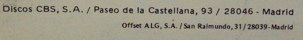 - Record Company – Discos CBS, S.A., Madrid