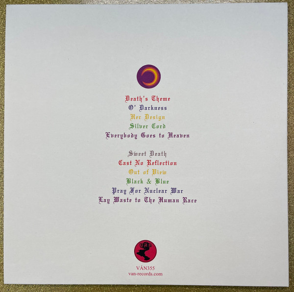 Full-colored gatefold jacket with cut-out, inside-out print and UV lacquer, flooded black inside.