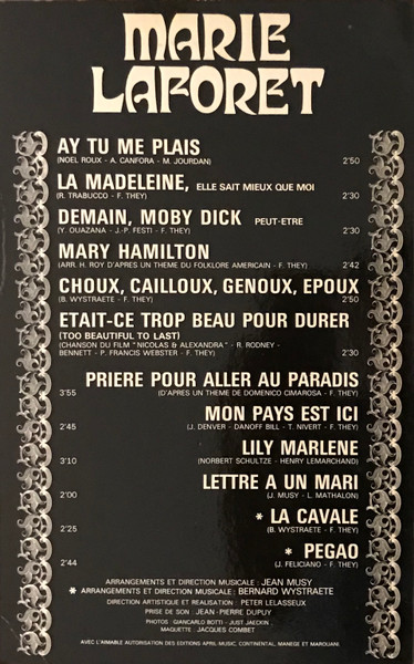 - Arranged By, Conductor – Bernard Wystraëte (tracks: B5, B6), Jean Musy (tracks: A1 to B4)