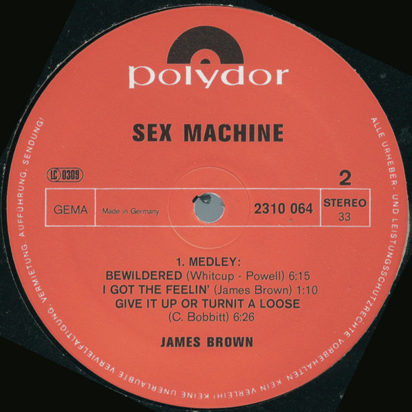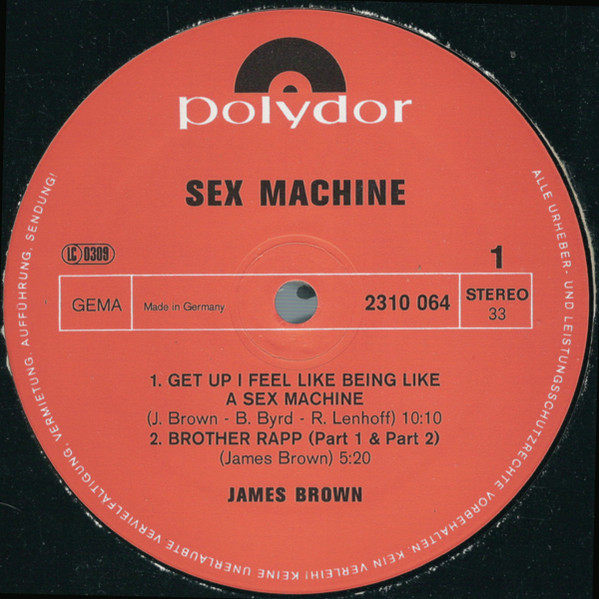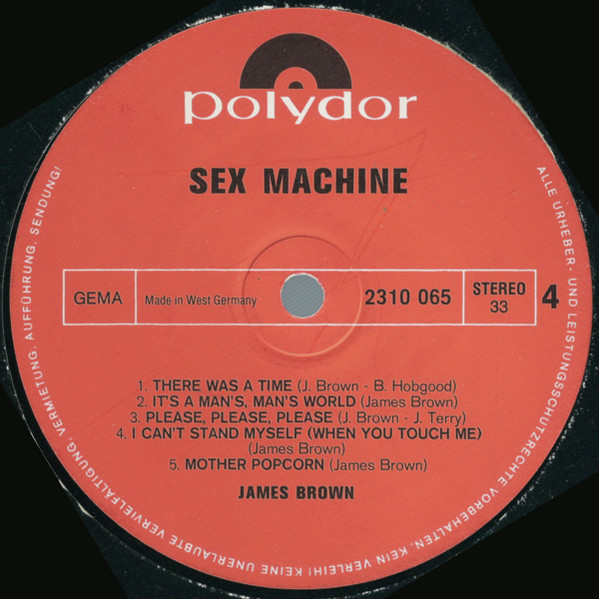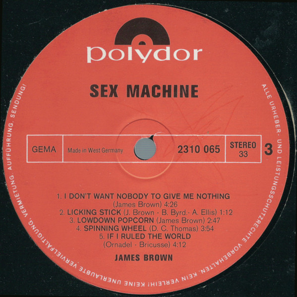James Brown - Sex Machine (Recorded Live At Home In Augusta, Georgia With His Bad Self) shows " Alle Urheber...." from right to left without label code on labels