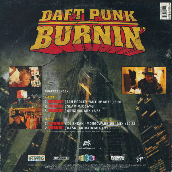 On back sleeve: photos taken from the video "Burnin'" directed by Seb Janiak /(c) Daft Trax.
