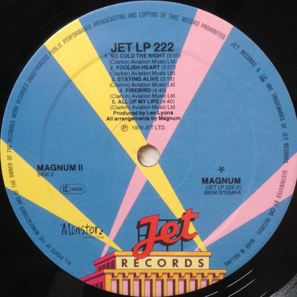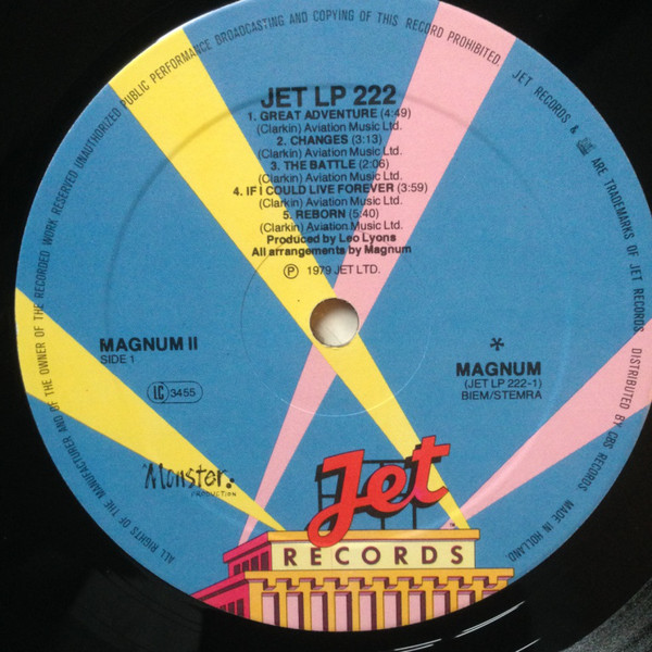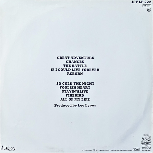 Silver print cover, printed inner sleeve with lyrics, photographs and credits. 'Monster Production'-logo appears on centre labels and cover rear.