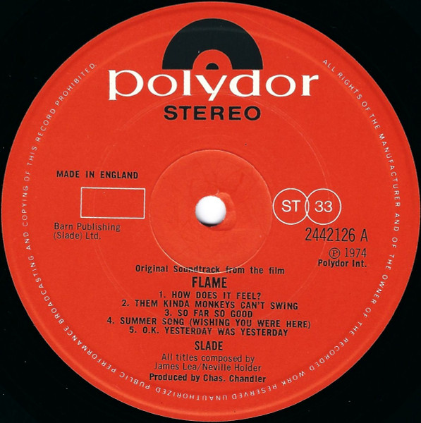 Original soundtrack from the film "Flame" starring Slade