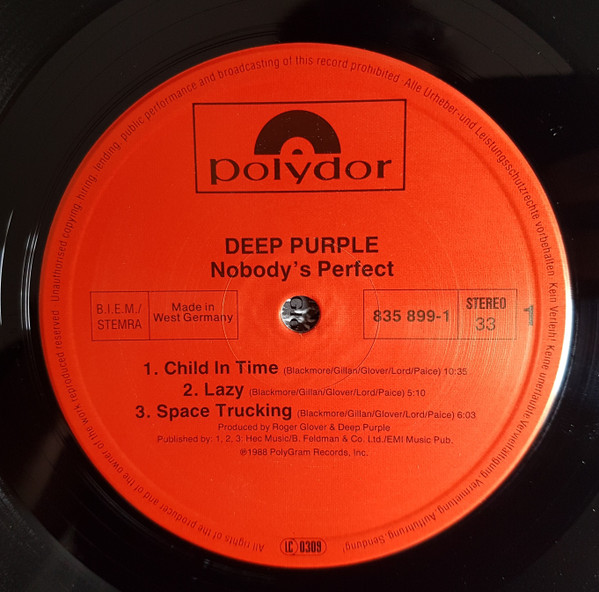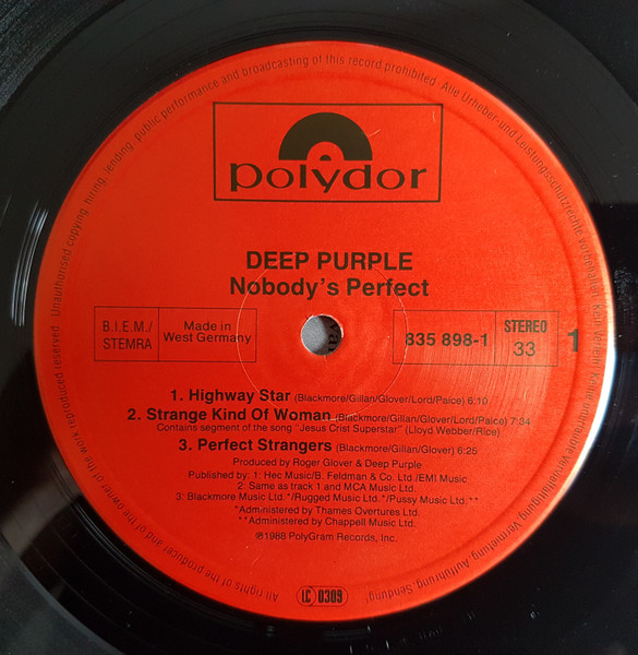 - Written-By – Gillan* (tracks: A1 to D3), Paice* (tracks: A1, A2, C1 to D3), Lord* (tracks: A1, A2, C1 to D3), Blackmore* (tracks: A1 to D3), Glover* (tracks: A1 to D3)