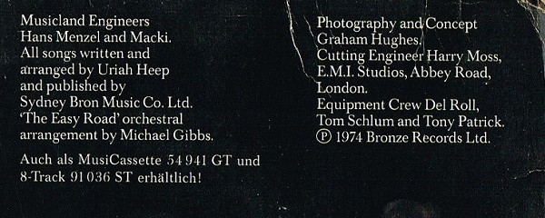 Recorded at Musicland, Munich, Germany. January/March 1974.