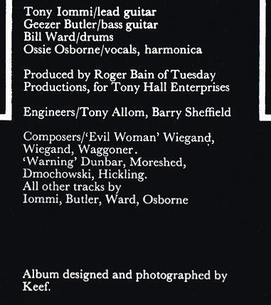 - Written-By – Dmochowski* (tracks: B3), Dunbar* (tracks: B3), Ward* (tracks: A1 to A4, B2), Wagner* (tracks: B1), Wiegand* (tracks: B1), Butler* (tracks: A1 to A4, B2), Moreshead* (tracks: B3), Wiegand* (tracks: B1), Osborne* (tracks: A1 to A4, B2), Iommi* (tracks: A1 to A4, B2), Hickling* (tracks: B3)