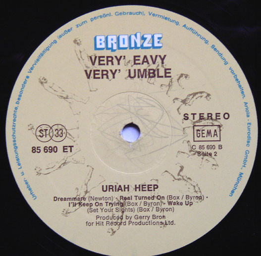 Labels show Very' Eavy Very' Umble