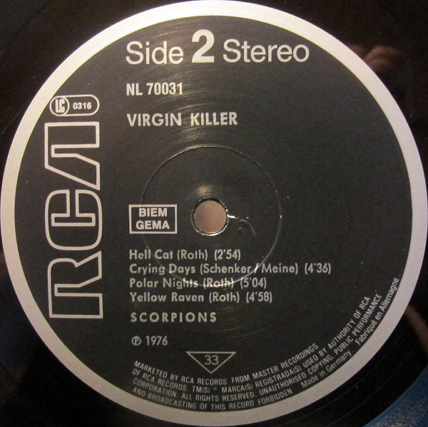 - Virgin Killer has 'BIEM GEMA' in two separate boxes