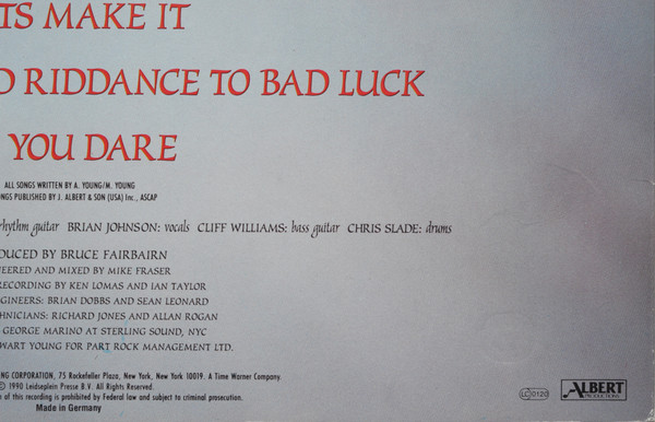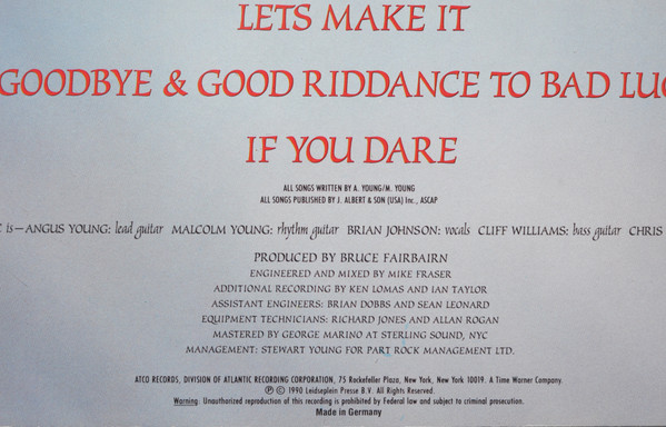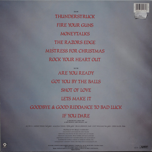 Made in Germany by WEA Musik GmbH, a Warner Communications Company is AC/DC - The Razors Edge