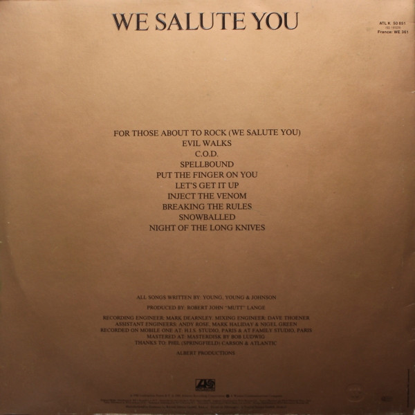 | A1 | For Those About To Rock (We Salute You) | 5:44 | |