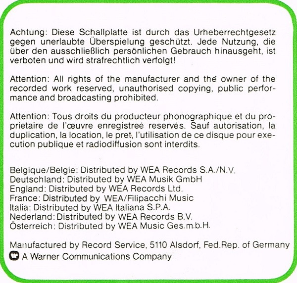 Österreich: Distributed by WEA Music Ges.m.b.H.