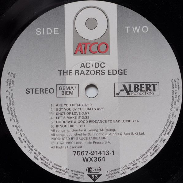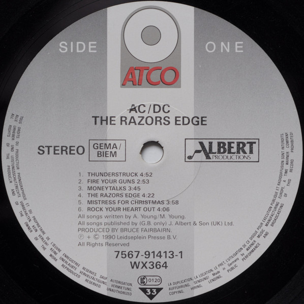 Made in Germany by WEA Musik GmbH, a Warner Communications Company is AC/DC - The Razors Edge