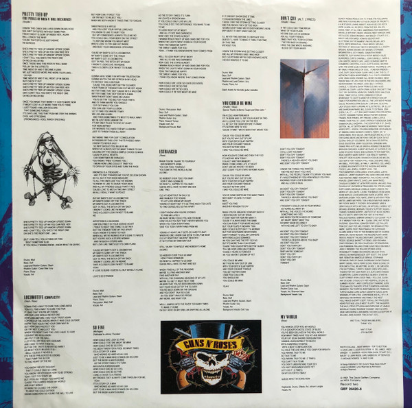 On the labels of this release, tracks B1 to D4 are credited to individual writers unlike the other Sonopress pressing Use Your Illusion II, which also has slightly different layout and publishing credits on labels.