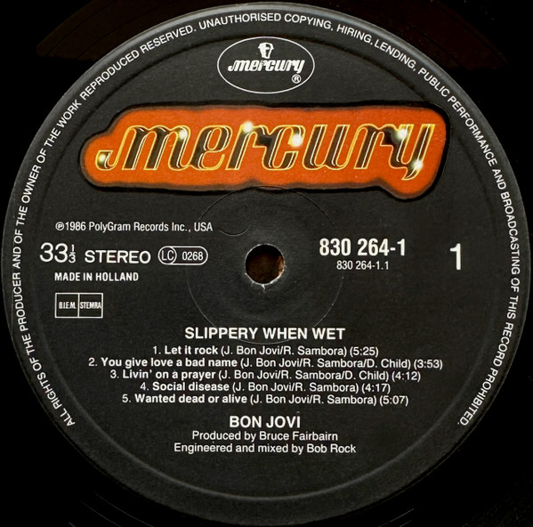 A2, A3 & B2 - Bon Jovi Publishing/April Music, Inc./Desmobile Music.