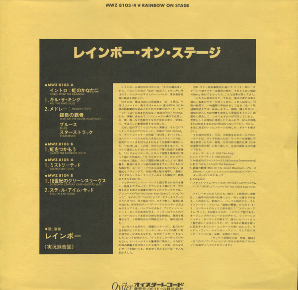 All songs published by Eule Music Inc./Armchair Music-BMI, except "Mistreated", which is published by Purple (USA) Music, Inc.-BMI and "Still I'm Sad", which is published by Glennwood Music Corp.-Ascap. A portion of the M.G.M. Soundtrack Recording of "The Wizard Of Oz" used by permission of Metro-Goldwyn-Mayer Inc. and M.G.M. Records Inc. introducing side 1, "Over The Rainbow" (Harburg-Arlen) Leo Feist, Inc.-ASCAP.