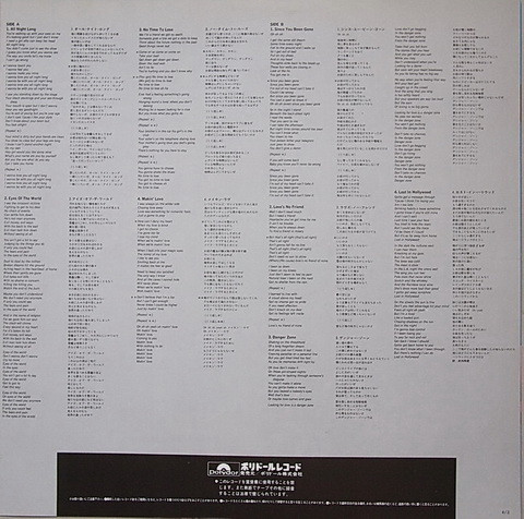 Includes obi & 4-page insert with color photos, Japanese liner notes, and lyrics in both Japanese & English.