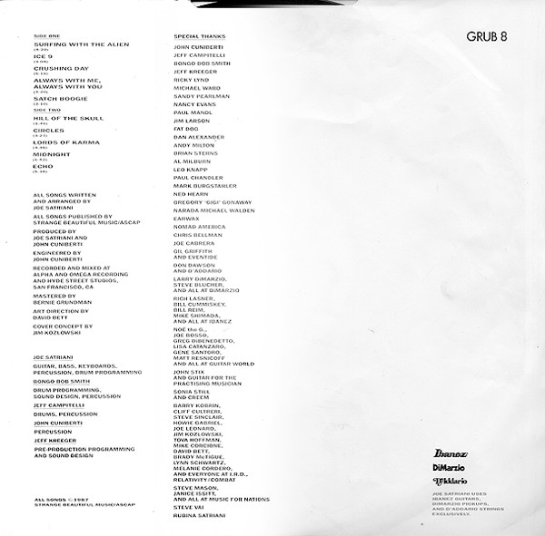- Written-By, Producer, Arranged By, Electric Guitar, Bass Guitar, Keyboards, Percussion, Drum Programming – Joe Satriani