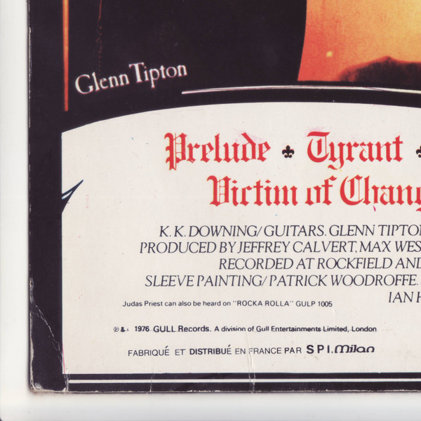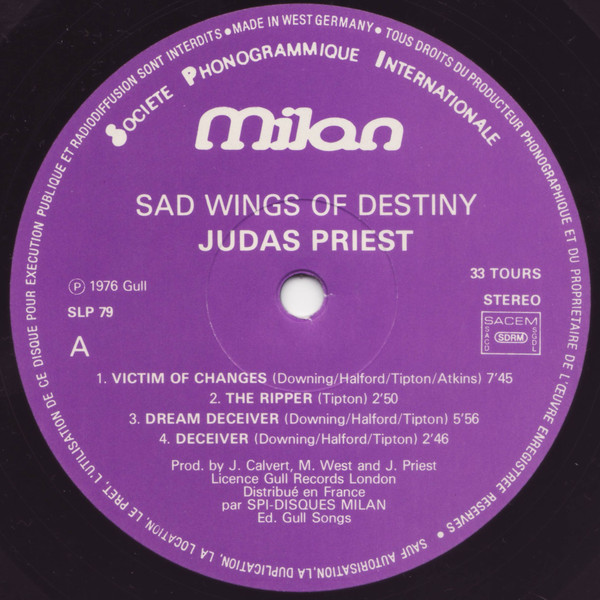 Labels are slightly different than Sad Wings Of Destiny (black letters on the French one, and white letters on the German).