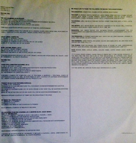 - Executive-Producer – Damon Dash, Kareem "Biggs" Burke*, Shawn Carter