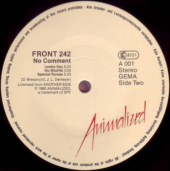 On back cover, track A2 is titled as "S.FR. Nomenklatura part one & two" and track B3 is misspelled as "Special Forcess".